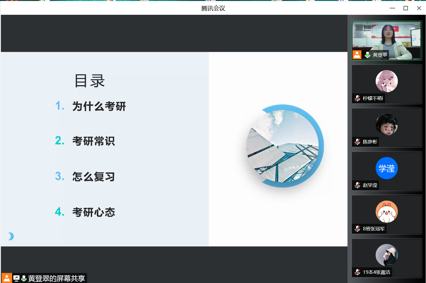为了激发公司2019级考研员工的考研热情,掌握考研技巧,同时提高正在备考员工的积极性,威廉希尔官网于4月1日下午举办了线上考研经验分享会。