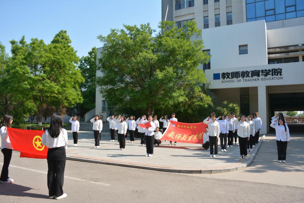 “我志愿加入中国共产主义青年团,坚决拥护中国共产党的领导……”团员青年们铿锵有力、朝气蓬勃的誓言,彰显了师院团员青年奋发有为、昂扬向上的精神面貌。宣誓后,团员青年们在中国共产主义青年团团旗下,满怀激情地歌唱《光荣啊,中国共青团》团歌,再一次接受“沉浸式”的精神洗礼。