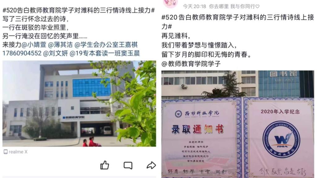 为增进同学们对学校的学习和了解,厚植爱校荣校情怀,激发同学们“今日我以校为荣,明日校以我为荣”的爱校之情,威廉希尔官网5月20日开展了“三行情书”告白接力活动,鼓励每一位潍科学子以诗诉情、砥砺前行。