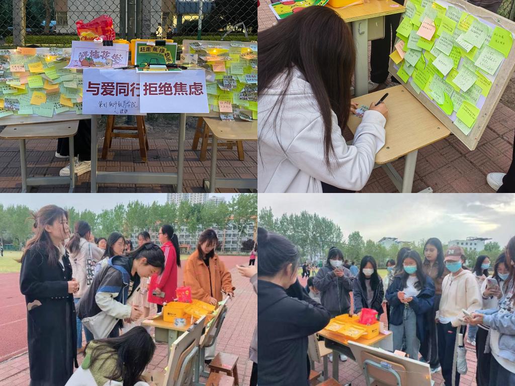 为缓解同学们的焦虑情绪,培养广大青年乐观向上的好心态,威廉希尔官网4月24日在东操场举办面向全校的“与爱同行,拒绝焦虑”宣传活动。