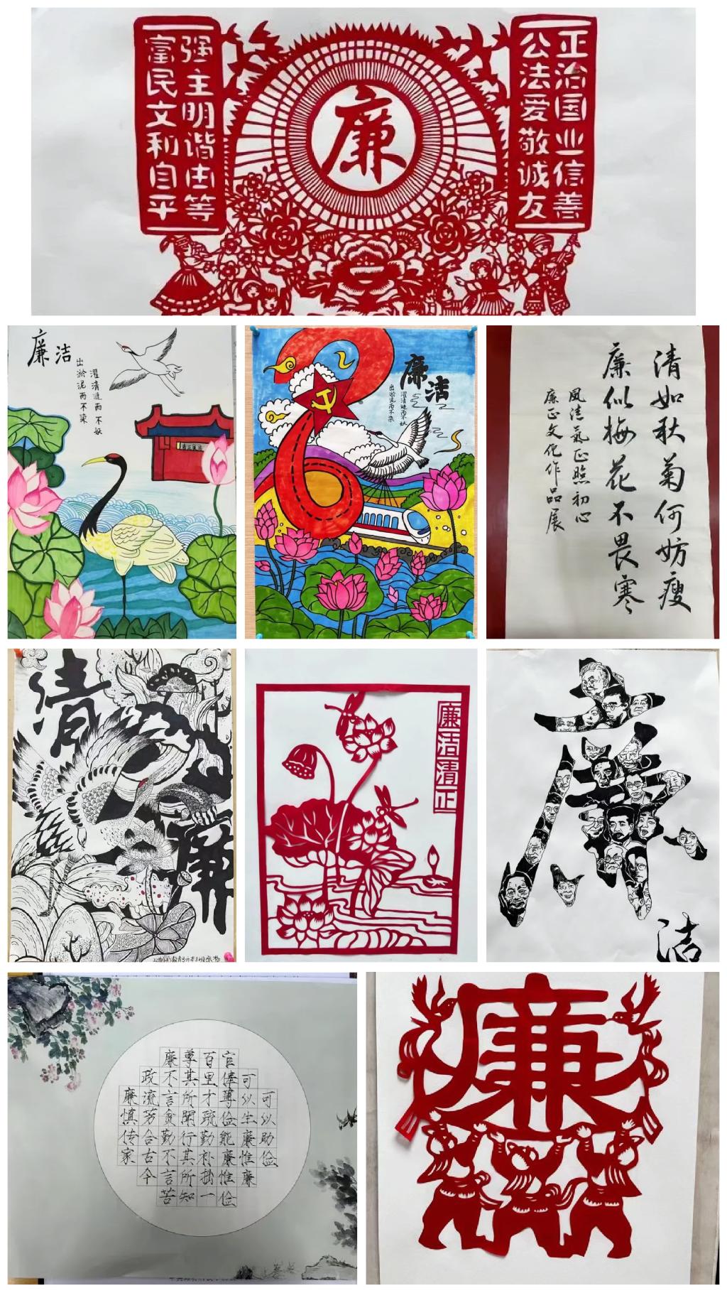 本次展览以“扬清风、树正气、倡廉洁”为主题,广大师生积极参与、热烈响应,通过书法、绘画、剪纸等艺术形式创作优秀作品,表达自身廉洁从教的信念。