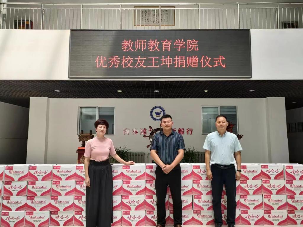 会后,在学院二楼大厅举行了捐赠仪式,王坤向学院捐赠了饮用水等一宗物资,并表达了希望能为母校发展作出贡献的意愿。