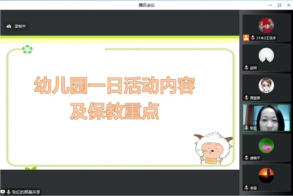 为帮助公司学前专业员工进一步巩固和深化专业知识,提升保教能力,为将来走入职场做好准备,威廉希尔官网4月28日邀请学府东郡幼儿园园长张红开展题为“幼儿园一日活动内容及保教重点”的线上专题讲座,全体教师及员工代表参加,黄登翠经理主持会议。